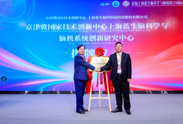 在与会嘉宾的共同见证下,“京津冀国家技术创新中心上海蓝生脑科学与脑机系统创新研究中心”正式揭牌。该中心将依托京津冀国家技术创新中心的技术资源和上海蓝生脑科的临床优势,促进人工智能技术与脑科临床研究的融合发展,努力产出突破性进展和颠覆性成果。